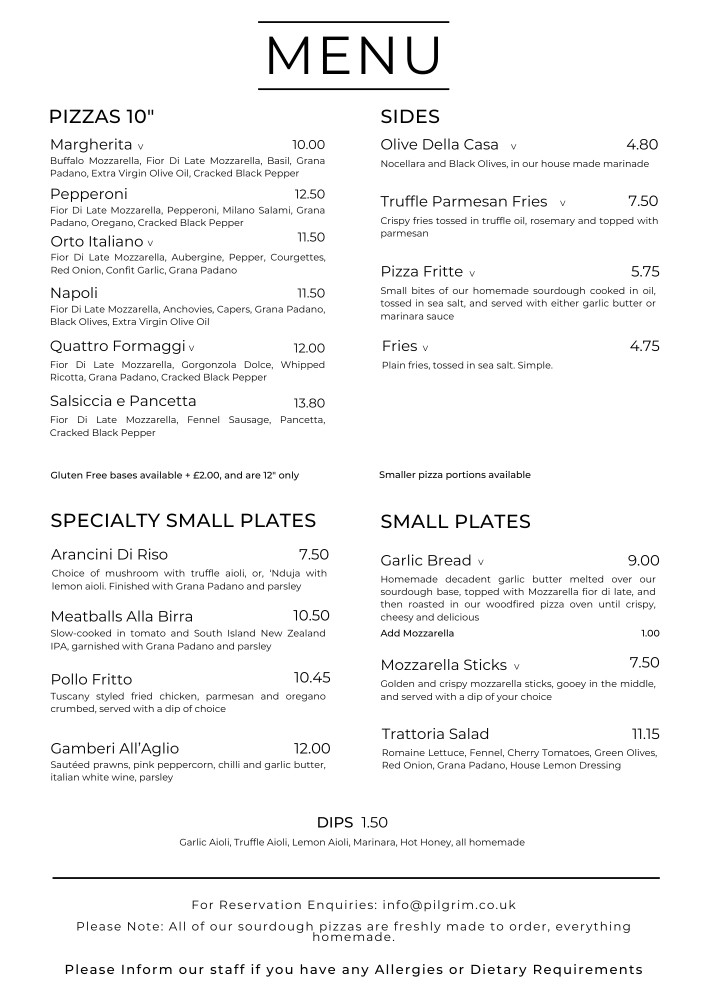 Please send an email to bookings@pilgrim.co.uk to reserve your table now!